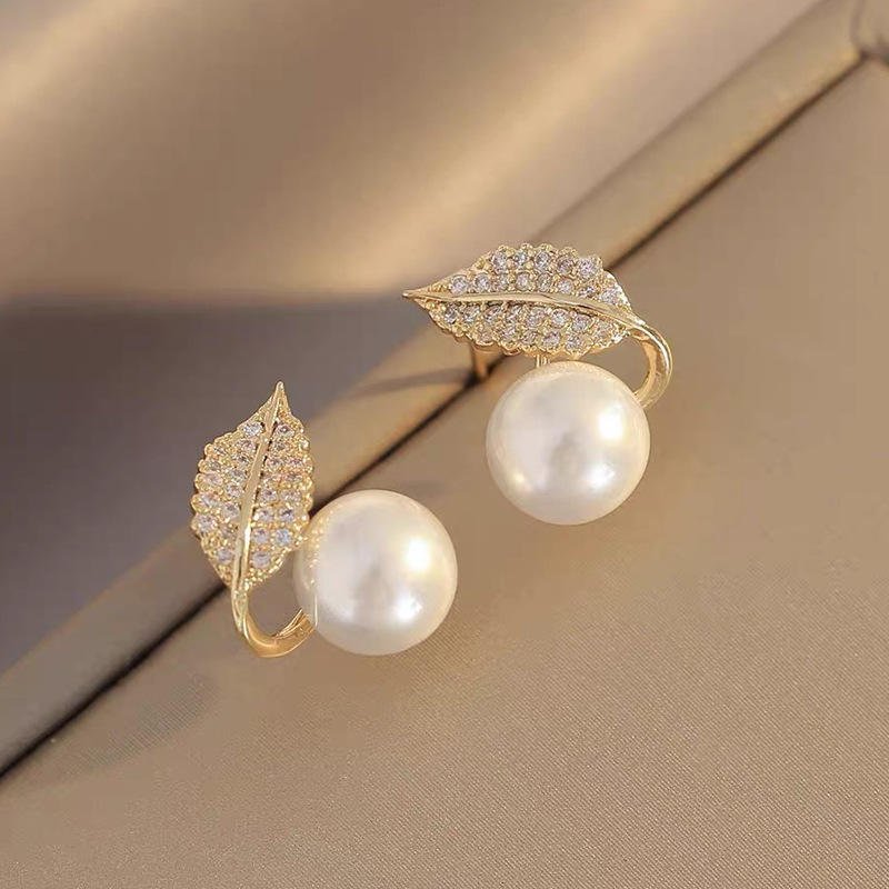 Beautiful Korean Leaf Pearl Earings / Daily Life Earring Accessories For Women