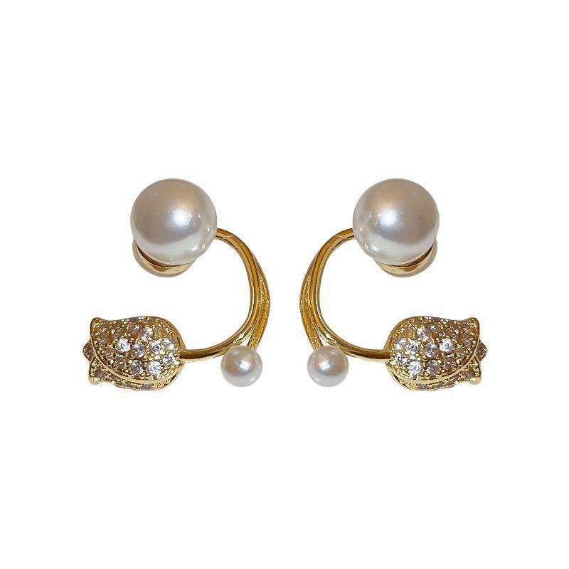 Beautiful Pearl Zircon Korean Flower Earrings for Women – Elegant Floral Design with Sparkling Zircon and Pearl Detailing | Premium Silver and Golden Fashion Jewelry for Parties