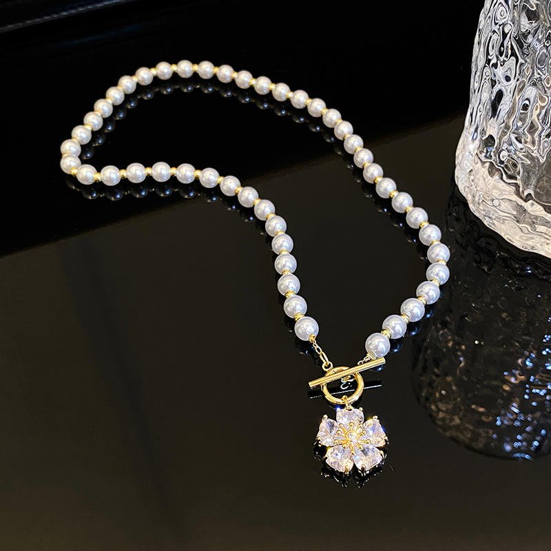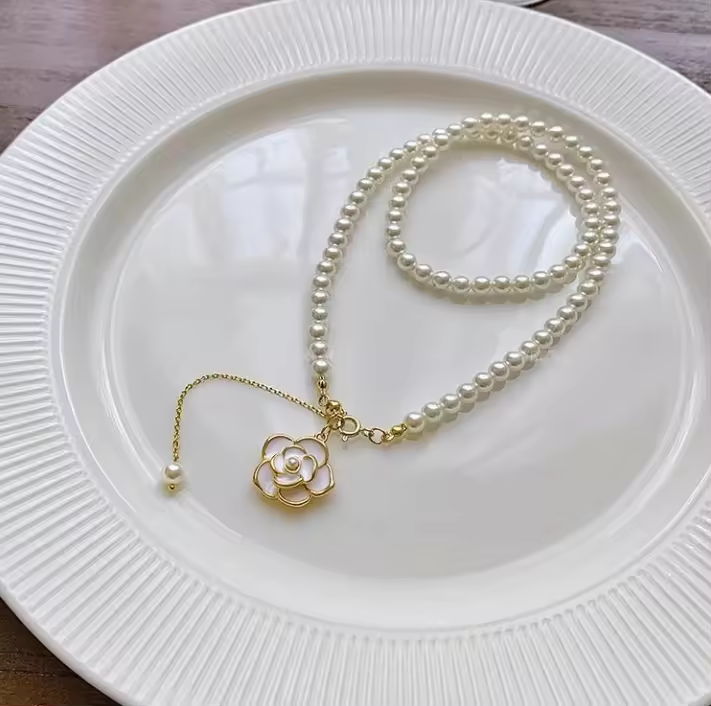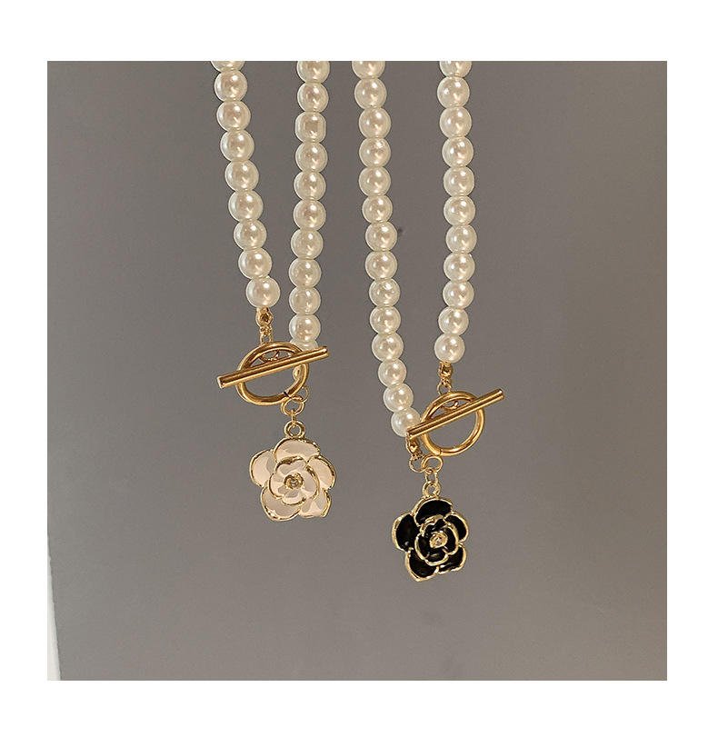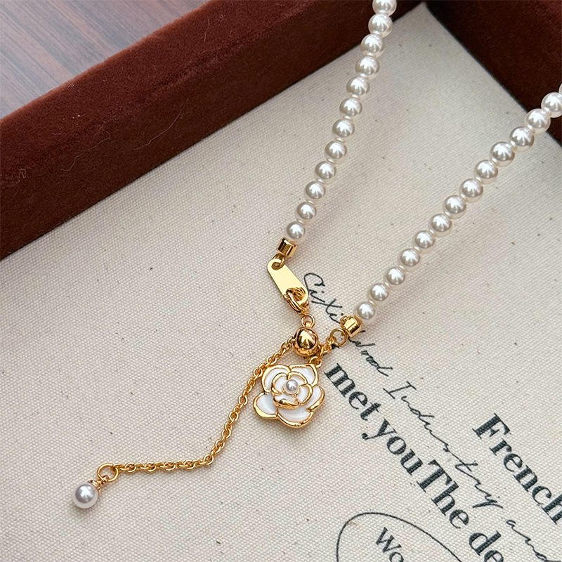 - Fashion camellia white rose necklace light luxury niche pearl ladies small sweet rose flower collarbone chain pendant gift