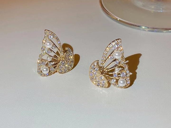 Korean Zircon And Pearl Butterfly front back earrings | Luxury Look Artificial Earrings | Girls Earrings | Women Earrings